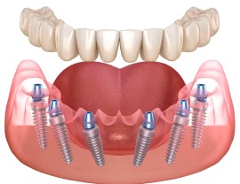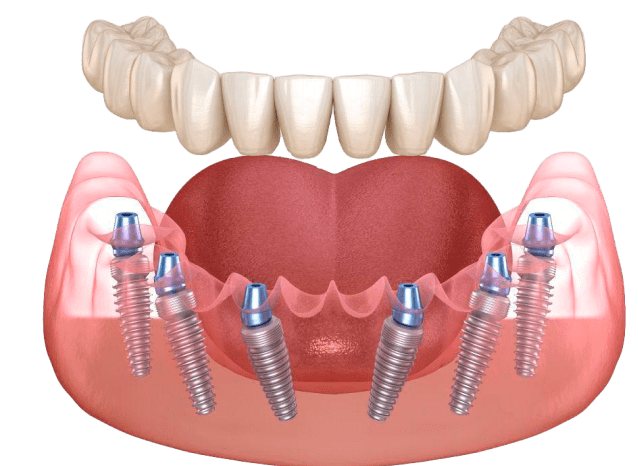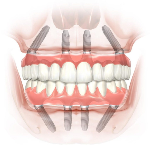 Это усовершенствованный современный способ восстановления отсутствующих зубов (метода All-on-4), в рамках которого задействуются шесть дентальных имплантатов